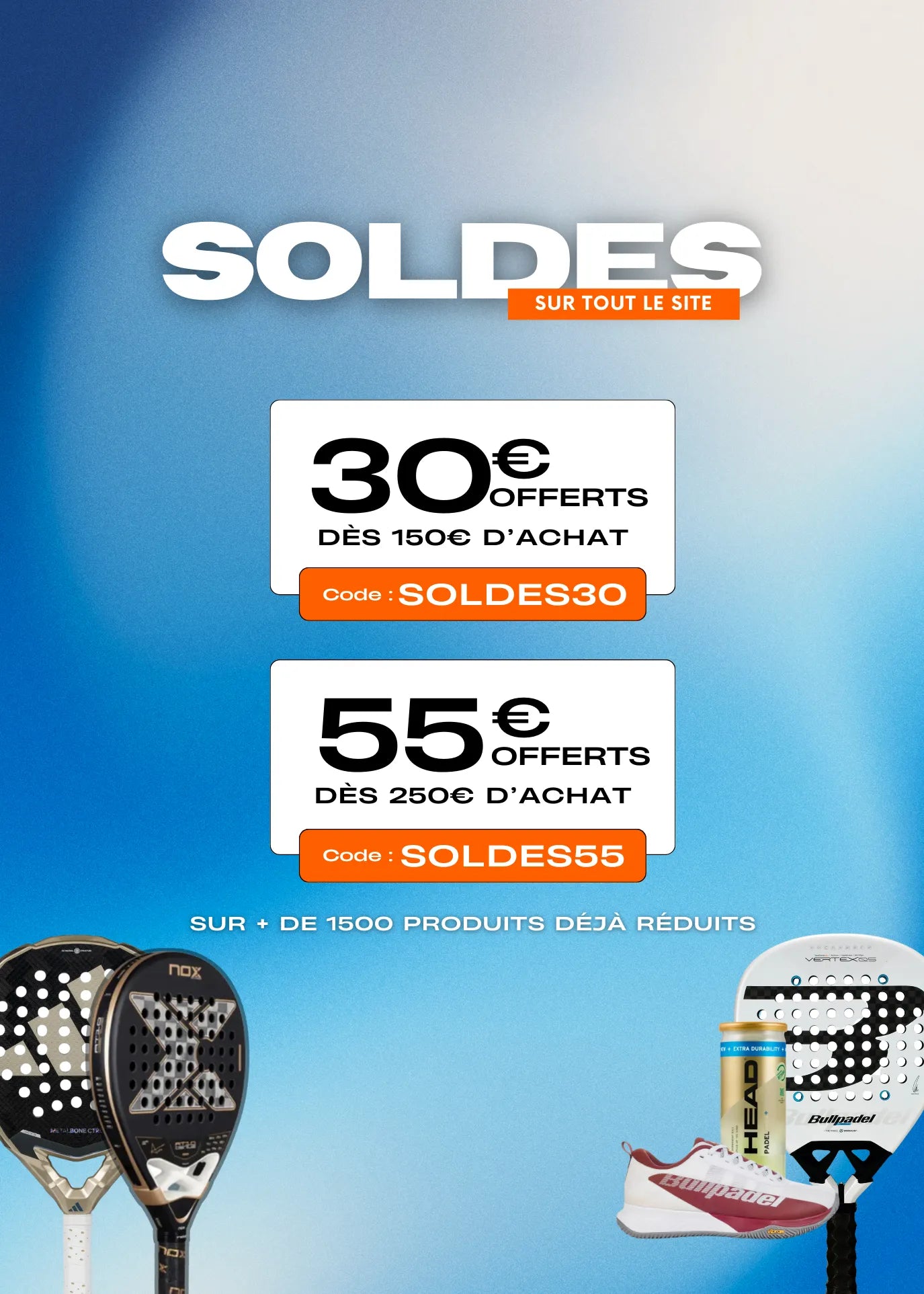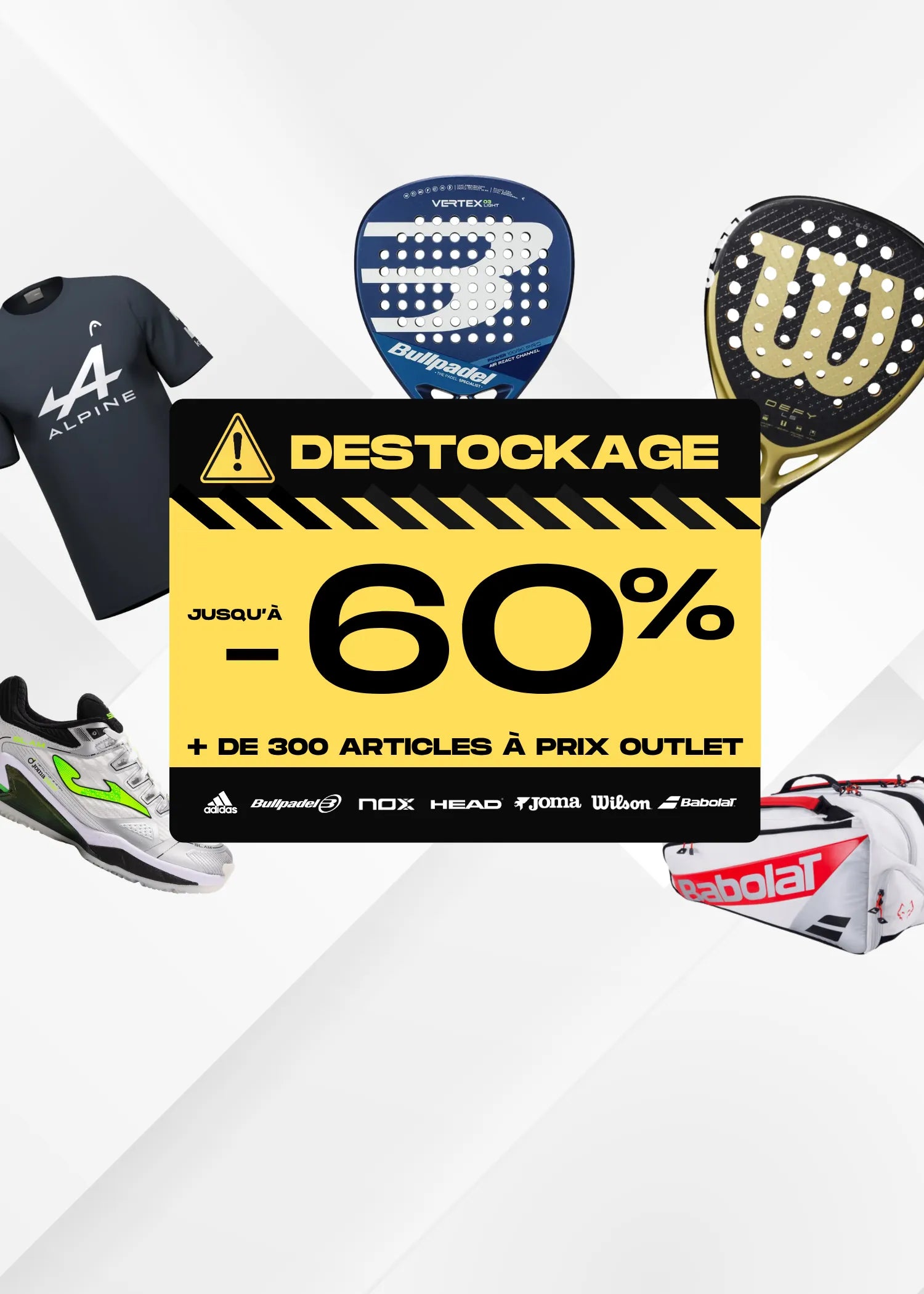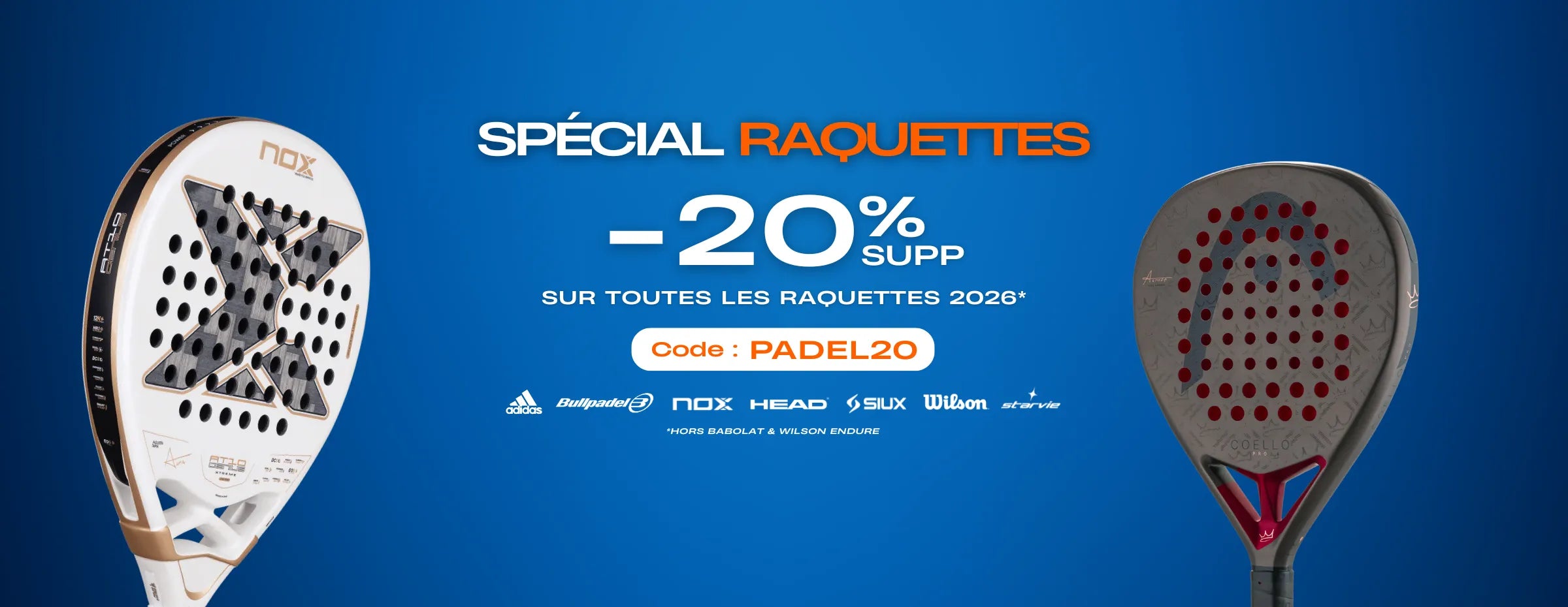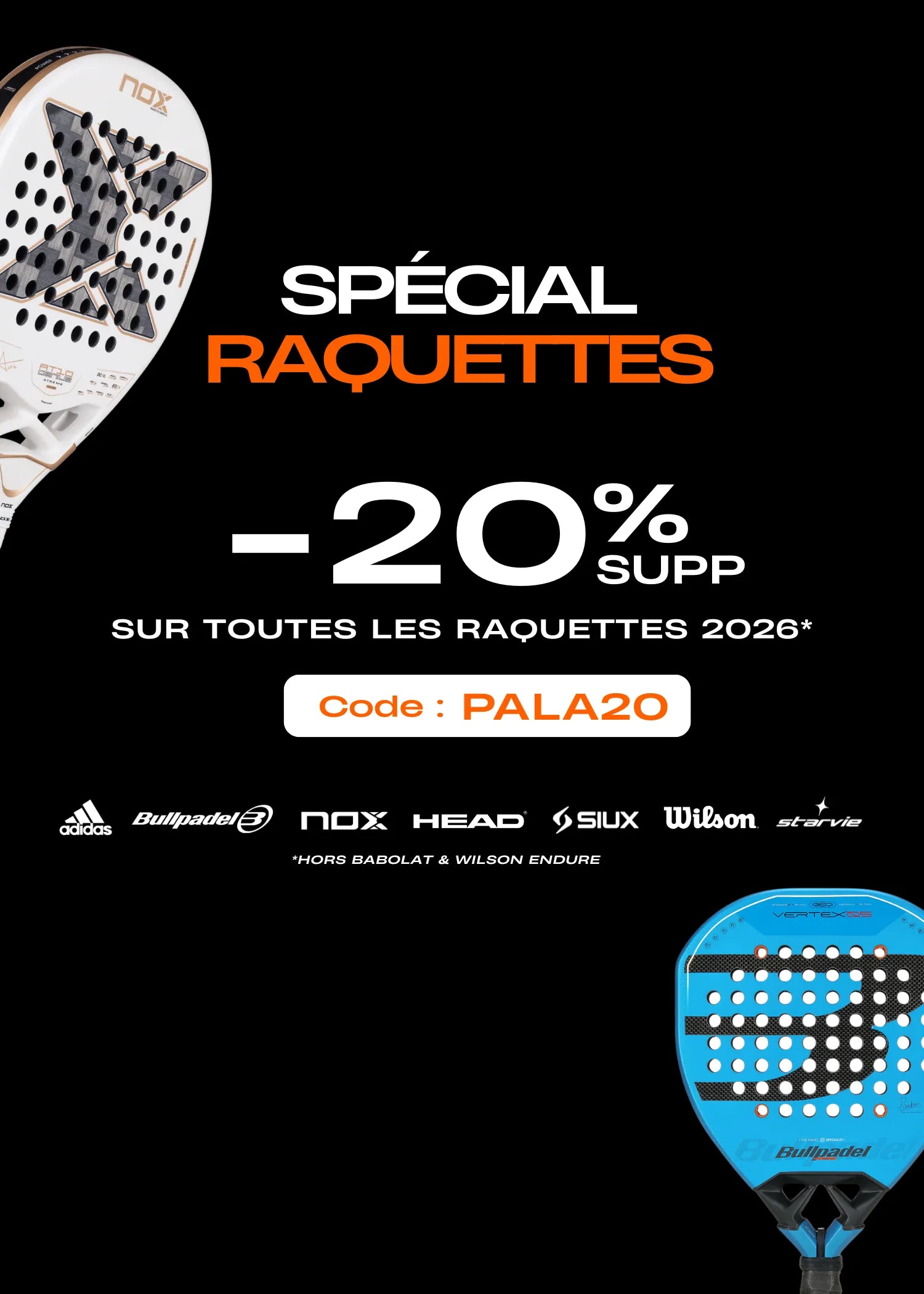 - Une sélection d’accessoires de padel indispensables : sacs, grips, surgrips, chaussures spécifiques et plus encore.