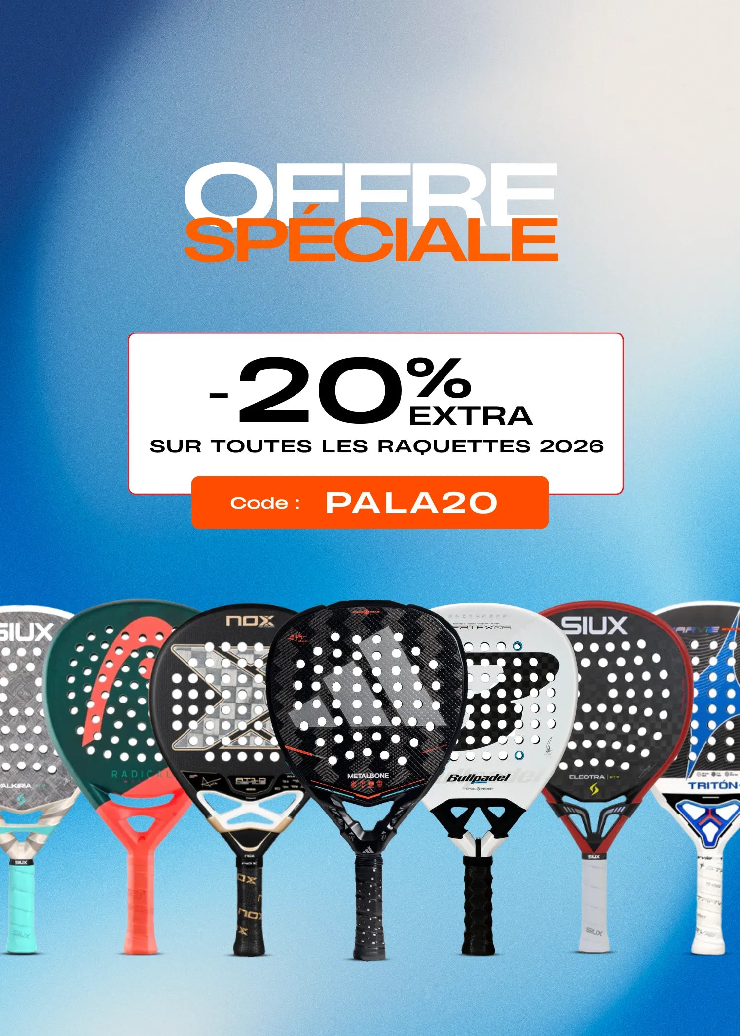 Votre satisfaction est notre priorité. Notre service client, réactif et expert en matériel de padel, est à votre écoute pour répondre à toutes vos questions et vous orienter dans vos choix par email, sur Facebook ou Instagram ou par téléphone au +33 04 42 27 62 45. Nous assurons également une livraison rapide et soignée, afin que vous puissiez profiter de vos nouvelles raquettes de padel et autres équipements dans les plus brefs délais.